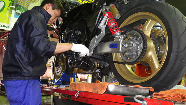 故障修理・部品交換・車検・定期点検・カスタム・部品取付け 中部運輸局認証工場。 オイルタイヤ交換から、車検や定期点検などを承っております。 また出先でのトラブルや始動不良等の修理にも対応しております。 リコール・アフターパーツ取得なども承っています。 バイクリフト完備。お客様の大切なオートバイを真心込めて整備をさせていただきます。 正規取扱店だからこそ、最新のシステムでお客様のオートバイをチェックいたします。